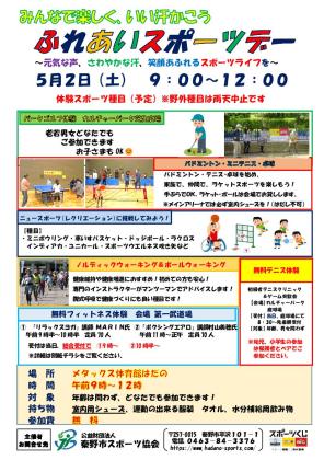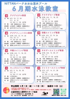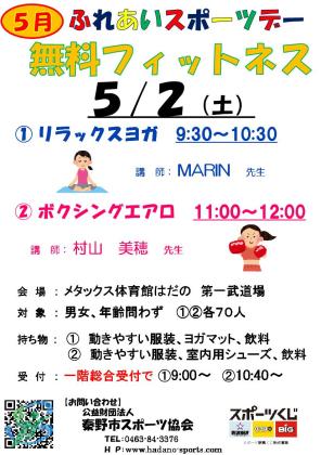 スポーツ教室・講習会のご案内 6月期水泳教室【会場:NITTANパークおおね】受付は、5月1日(金)~7日(木)、抽選9日(土) 親子ビクス教室(3歳~5歳)受付は、4月15日(水)から22日(火)、抽選24日(金) 初心者弓道教室受付は、4月15日(水)から22日(水)抽選24日(金) こどもテニス教室【カルチャーパーク】受付は終了しました ピラティス教室【渋沢公民館】定員まで残りわずか。※定員に達し次第、キャンセル待ちを若干名受け付けます。 ヨガ教室【鶴巻公民館】定員まで先着順受付 こども体操教室受付は終了しました ◆3密避けよう動画配信プロジェクト▷チャレンジデー特別企画公開中 ◇当日受付型スポーツ教室